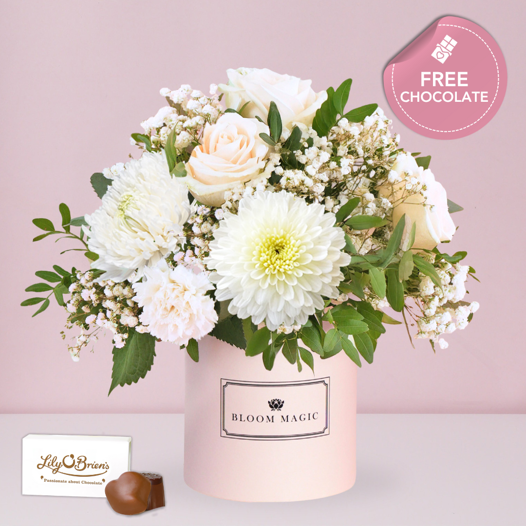 There are a number of different types of flower arrangements to choose from. A classic bouquet is always a good option; it's easy to put together and can be very stunning. If you want something a little more unique, however, you might want to consider a hatbox arrangement, an elegant arrangement that is certain to make your loved one feel cherished. This delicate and graceful flower arrangement can be fun and creative, and it works especially well for displaying flowers. If you want a classic and timeless flower arrangement and a perfect centerpiece, you can choose from our selection of vase arrangement, it is a very practical arrangement as you can re-use the vase. For something even more elaborate, you may want to go with a larger arrangement for special occasions. You can also choose flower arrangements that feature a variety of flowers in a color palette of your choice. Some popular themes include sunflowers for a summery feel, white roses for elegance and a mix of bright and cheerful blooms for a cheerful gift. Add with some touch of greenery and touch of pistache leaves to complete the composition that will surely make someone smile.