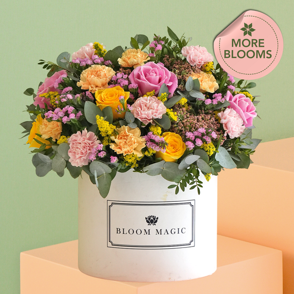 Our flowers are delivered in bud for ultimate freshness and lifespan. Due to the seasonal nature of our flower arrangements, some secondary stems can vary and actual flower hues may also vary from those displayed in the images.