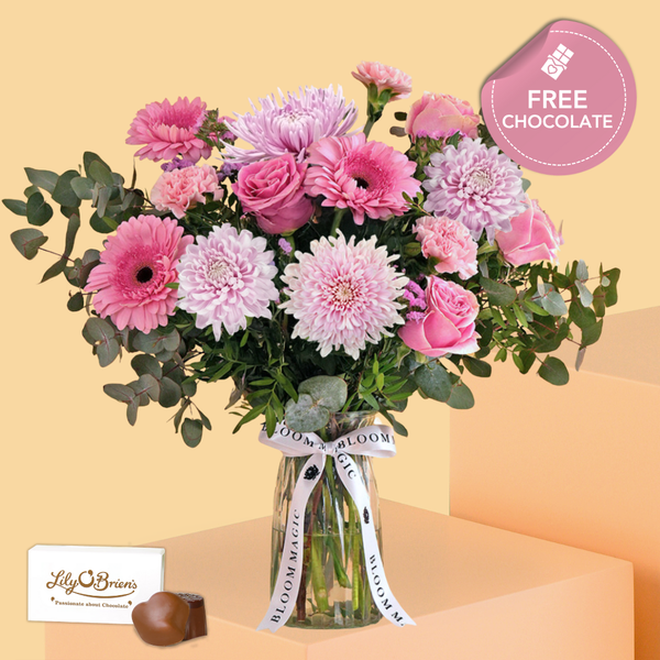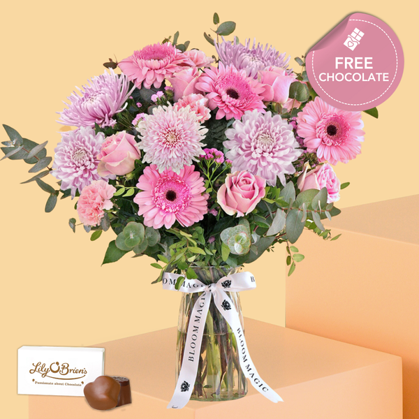This arrangement comes with a Free Lily O'Brien 2pc Chocolate Set.
