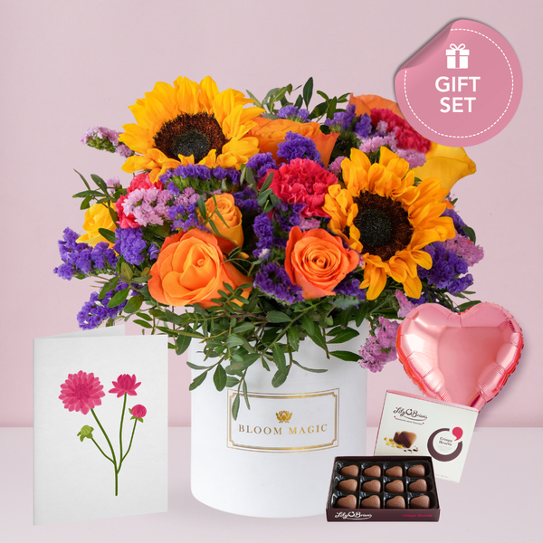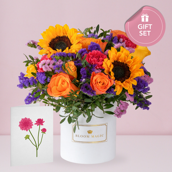 Please note that Hatbox design/ Style may varyOur flowers are delivered in bud for ultimate freshness and lifespan. Due to the seasonal nature of our flower arrangements, some secondary stems can vary and actual flower hues may also vary from those displayed in the images.