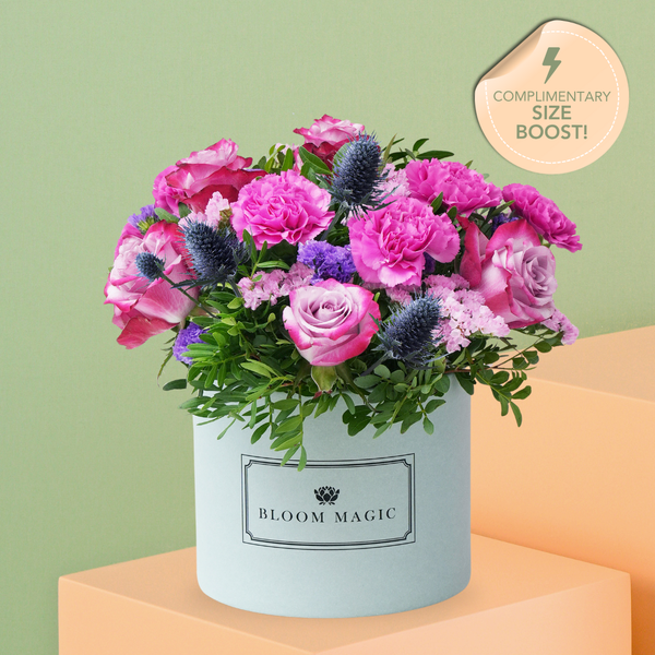 Our flowers are delivered in bud for ultimate freshness and lifespan. Due to the seasonal nature of our flower arrangements, some secondary stems can vary and actual flower hues may also vary from those displayed in the images.